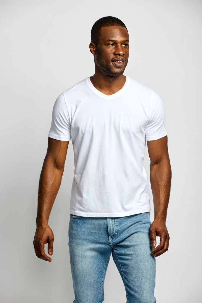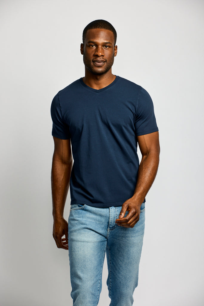 The T that goes the distance, the V-Neck Short Sleeve hits the sweet spot between comfort and style. The T is pulled together enough for your workday, with the laid-back feel of after hours. The overstitched collar keeps its shape so you never look sloppy. Just confident and relaxed. And with just the right amount of V, you never have to worry about showing off your chains. While this T works for date night or late night, it feels even better for staying in.
