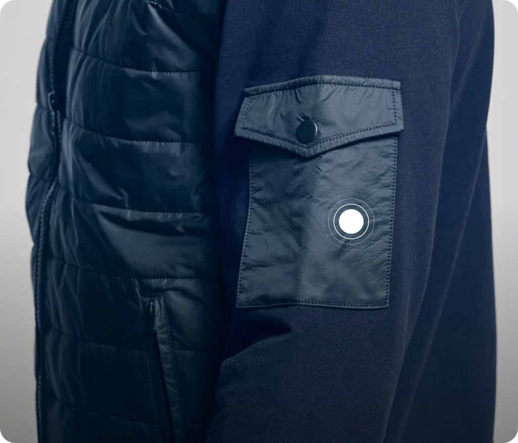Arm flap pocket and zip side pockets for function and edge